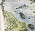 An important feature of this map is the depiction of the ruins of Fort La Boulaye the First Settlement made in 1700. This fort, located on the eastern bank of the Mississippi River about fifty miles from the Gulf of Mexico, was established by Pierre Le Moyne d'Iberville in 1700 and was abandoned about seven years later. In 1933 the remains of Fort La Boulaye were discovered near present-day Phoenix, Louisiana, in Plaquemines Parish. |