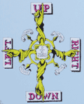 In the early 1970's networking concepts were poorly understood and the artist uses common pictograms as metaphors as an aid to understanding. Without exception each university/research Supercomputing center is represented by old white men in suits, most with ties (NASA Ames the exception). Names of each institution appears on the outstretched arms of the old white men as they extend into the cube of another institution with an old white man. By Digital Equipment Corporation, Maynard, Massachusetts, run by old white men in the 1970's. |