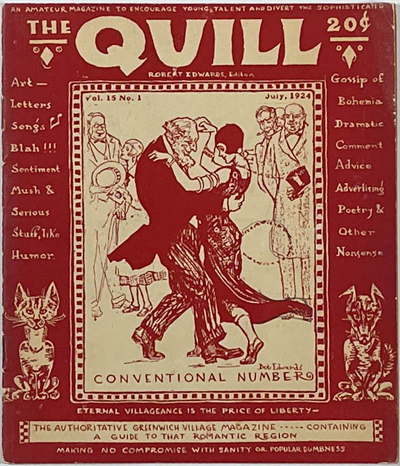 Bobby Edwards edited the Greenwich Village magazine, The Quill and contributed songs, gossip, verse and this early pictorial map. Price includes complete "The Quill". Vol 15. July 1924. No. 1. Light card cover. 31 pages.