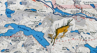 Fine pictorial map of Baxter State Park, Maine by Augustus D. Phillips & Son - Northeast Harbor Maine, dated within to 1965 and presumed first edition. As a dedication below the title Phillips wrote: